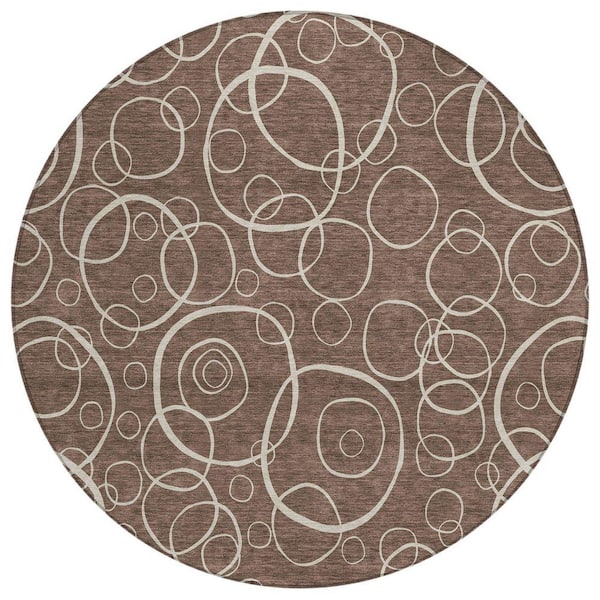 Chantille Machine Washable Indoor/Outdoor Abstract ACN2407 Brown 8 ft. x 8 ft. Round Rug
