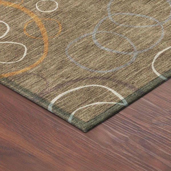 Chantille Machine Washable Indoor/Outdoor Abstract ACN2408 Brown 8 ft. x 8 ft. Round Rug