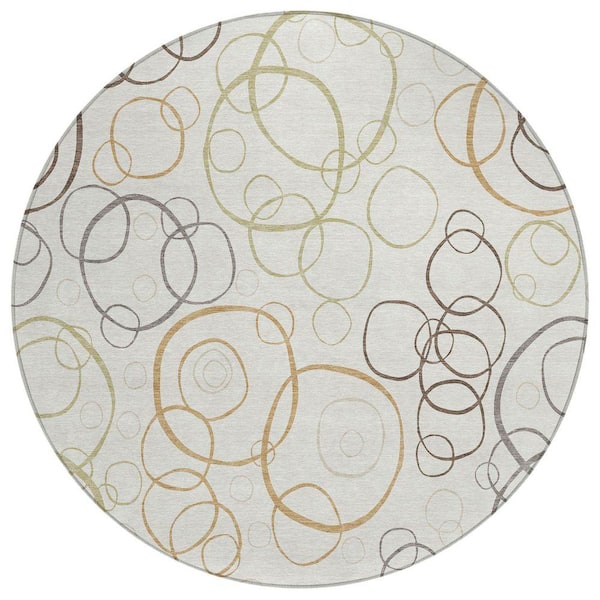 Chantille Machine Washable Indoor/Outdoor Abstract ACN2408 Ivory 8 ft. x 8 ft. Round Rug