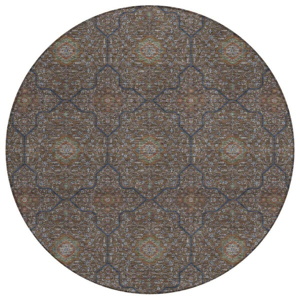 Chantille Machine Washable Indoor/Outdoor Abstract ACN2409 Chocolate 8 ft. x 8 ft. Round Rug