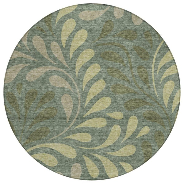 Chantille Machine Washable Indoor/Outdoor Abstract ACN2411 Basil 8 ft. x 8 ft. Round Rug