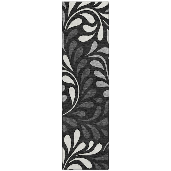 Chantille Machine Washable Indoor/Outdoor Abstract ACN2411 Black 2 ft. x 7 ft. Runner Rug