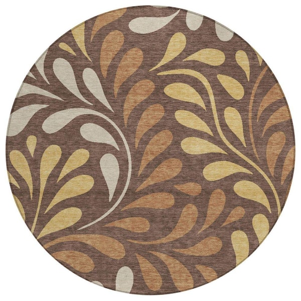 Chantille Machine Washable Indoor/Outdoor Abstract ACN2411 Fudge 8 ft. x 8 ft. Round Rug