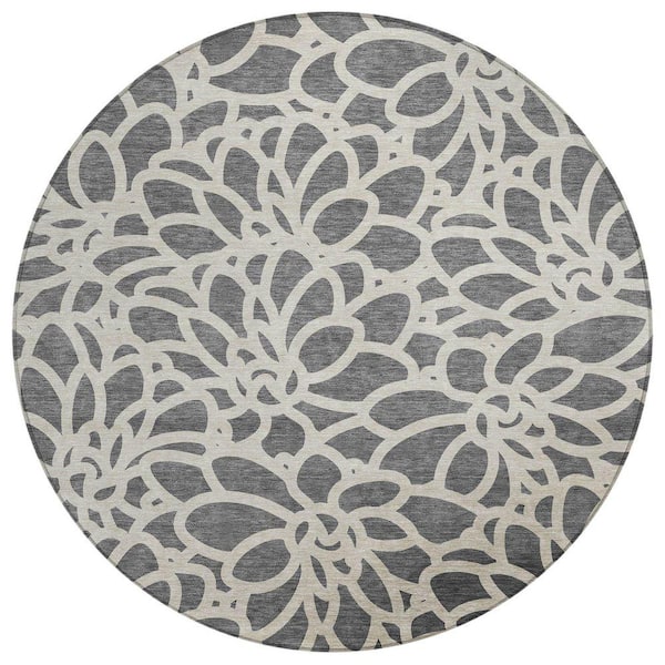Chantille Machine Washable Indoor/Outdoor Abstract ACN2412 Gray 8 ft. x 8 ft. Round Rug