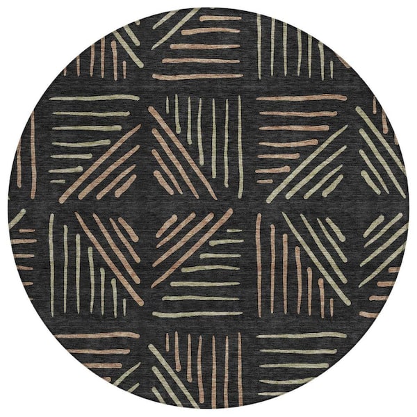 Chantille Machine Washable Indoor/Outdoor Abstract ACN2413 Black 8 ft. x 8 ft. Round Rug