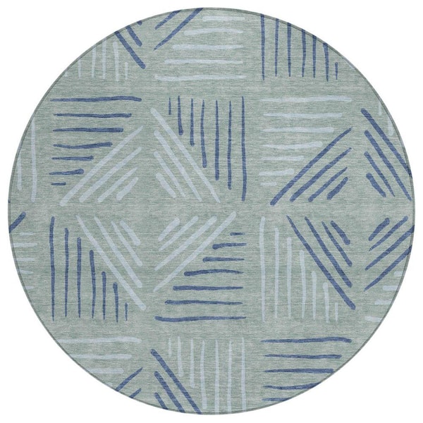 Chantille Machine Washable Indoor/Outdoor Abstract ACN2413 Spa 8 ft. x 8 ft. Round Rug
