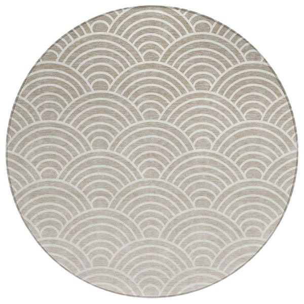 Chantille Machine Washable Indoor/Outdoor Abstract ACN2414 Ivory 8 ft. x 8 ft. Round Rug