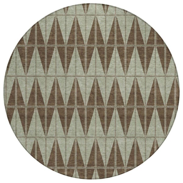 Chantille Machine Washable Indoor/Outdoor Abstract ACN2415 Chocolate 8 ft. x 8 ft. Round Rug
