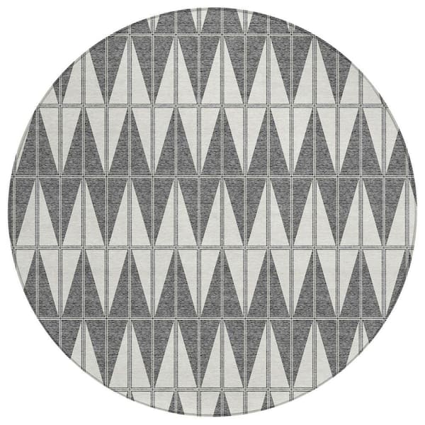 Chantille Machine Washable Indoor/Outdoor Abstract ACN2415 Ivory 8 ft. x 8 ft. Round Rug