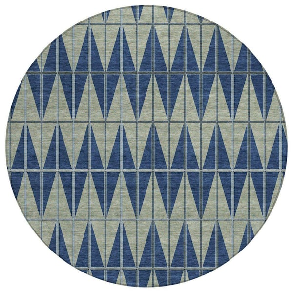 Chantille Machine Washable Indoor/Outdoor Abstract ACN2415 Navy 8 ft. x 8 ft. Round Rug