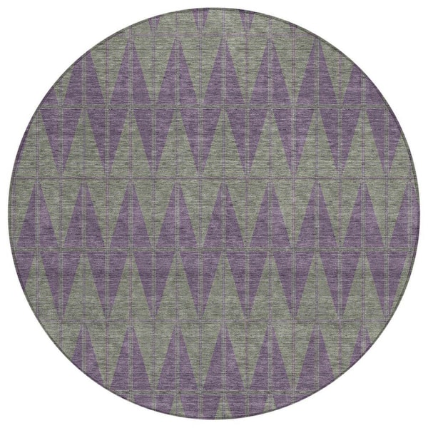 Chantille Machine Washable Indoor/Outdoor Abstract ACN2415 Plum 8 ft. x 8 ft. Round Rug