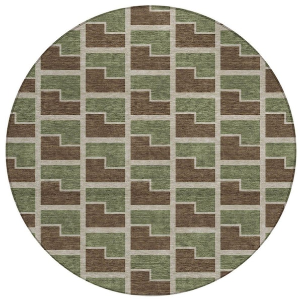 Chantille Machine Washable Indoor/Outdoor Abstract ACN2416 Chocolate 8 ft. x 8 ft. Round Rug