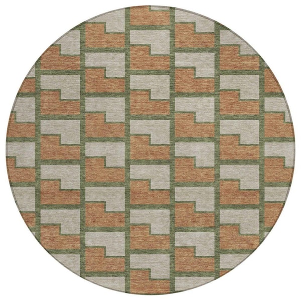 Chantille Machine Washable Indoor/Outdoor Abstract ACN2416 Copper 8 ft. x 8 ft. Round Rug