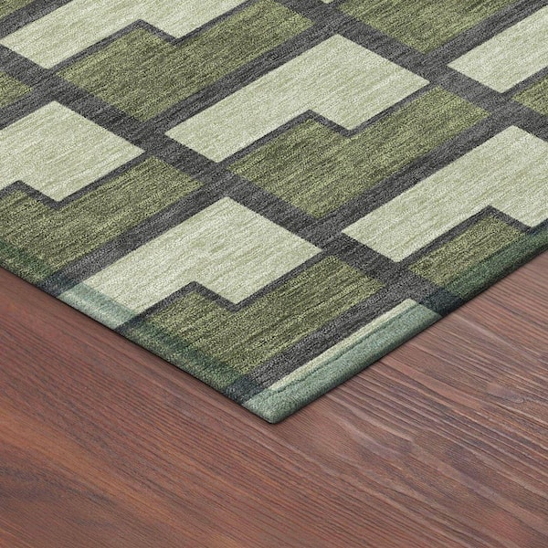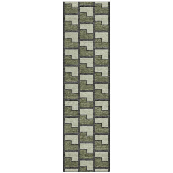 Chantille Machine Washable Indoor/Outdoor Abstract ACN2416 Olive 2 ft. x 7 ft. Runner Rug