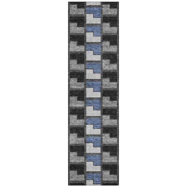 Chantille Machine Washable Indoor/Outdoor Abstract ACN2417 Black 2 ft. x 7 ft. Runner Rug