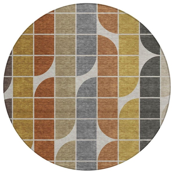 Chantille Machine Washable Indoor/Outdoor Abstract ACN2418 Coffee 8 ft. x 8 ft. Round Rug