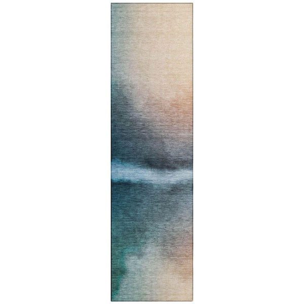 Chantille Machine Washable Indoor/Outdoor Abstract ACN2419 Teal 2 ft. x 7 ft. Runner Rug