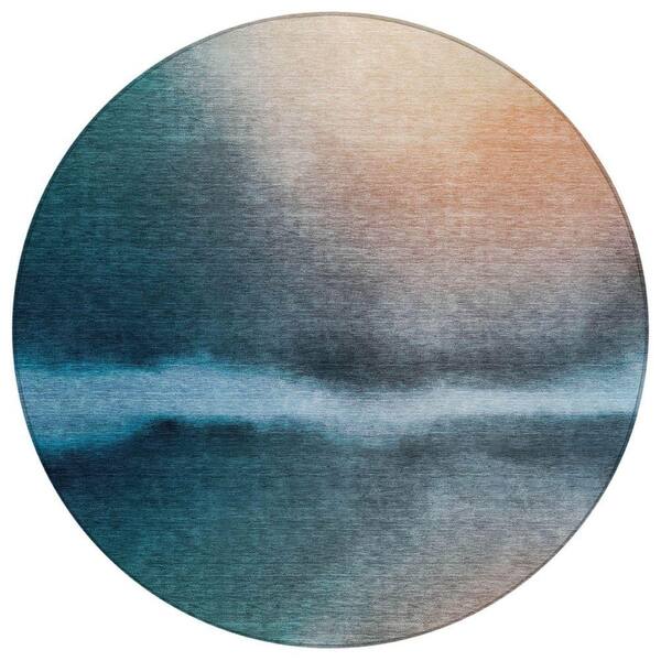 Chantille Machine Washable Indoor/Outdoor Abstract ACN2419 Teal 8 ft. x 8 ft. Round Rug