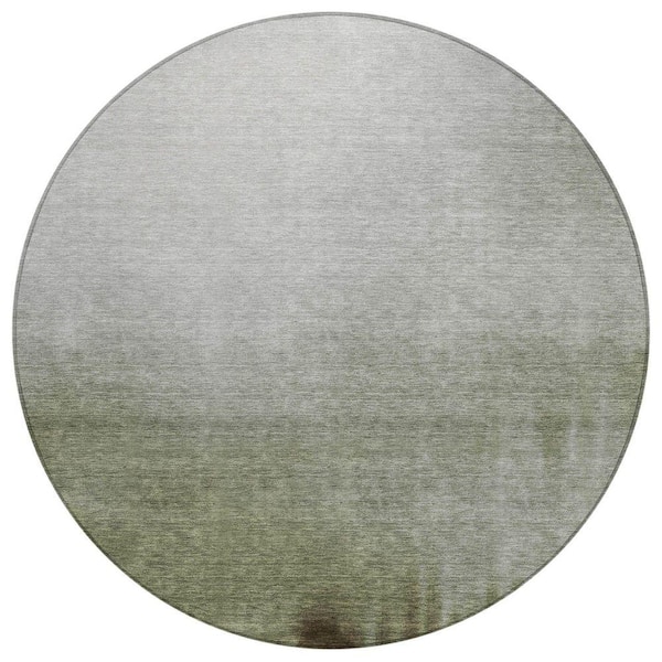 Chantille Machine Washable Indoor/Outdoor Abstract ACN2420 Celery 8 ft. x 8 ft. Round Rug