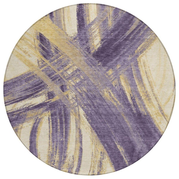 Chantille Machine Washable Indoor/Outdoor Abstract ACN2421 Plum 8 ft. x 8 ft. Round Rug