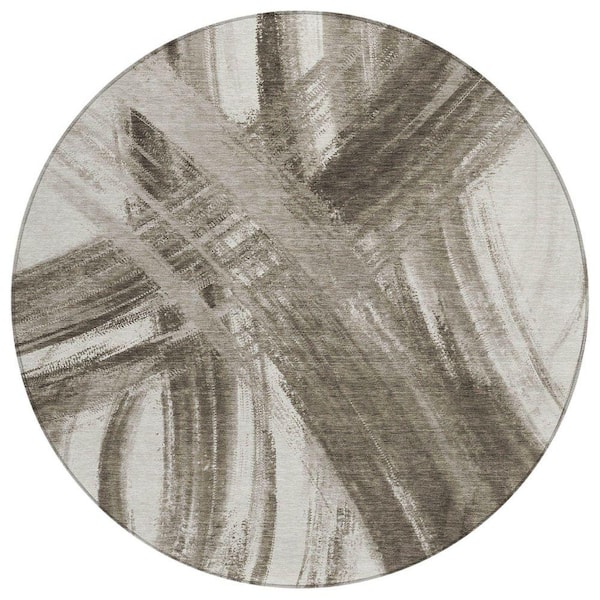 Chantille Machine Washable Indoor/Outdoor Abstract ACN2421 Taupe 8 ft. x 8 ft. Round Rug