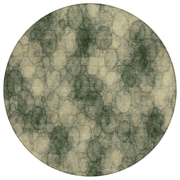 Chantille Machine Washable Indoor/Outdoor Abstract ACN2424 Basil 8 ft. x 8 ft. Round Rug
