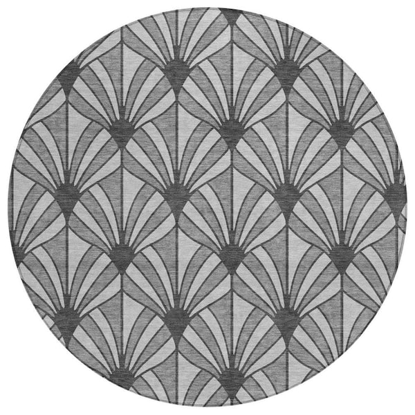Chantille Machine Washable Indoor/Outdoor Abstract ACN2426 Gray 8 ft. x 8 ft. Round Rug