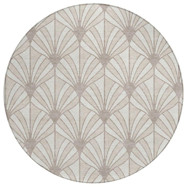Chantille Machine Washable Indoor/Outdoor Abstract ACN2426 Ivory 8 ft. x 8 ft. Round Rug