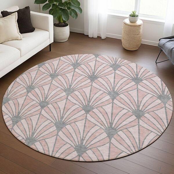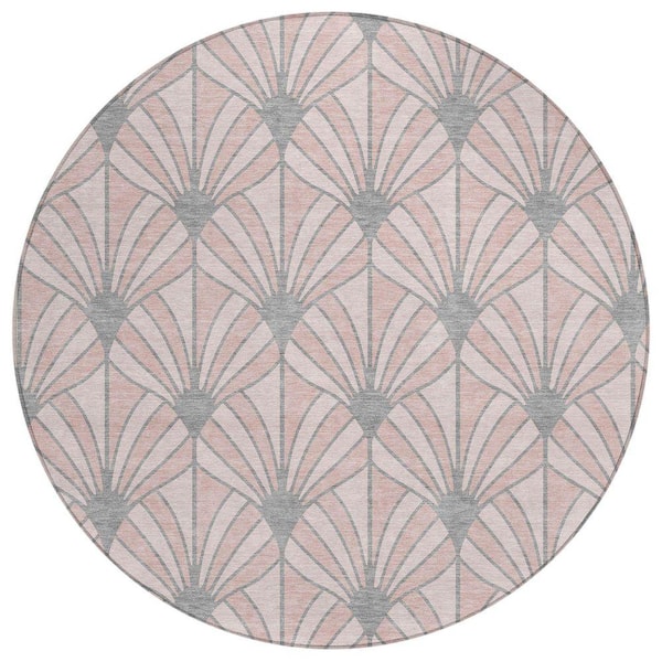 Chantille Machine Washable Indoor/Outdoor Abstract ACN2426 Pink 8 ft. x 8 ft. Round Rug