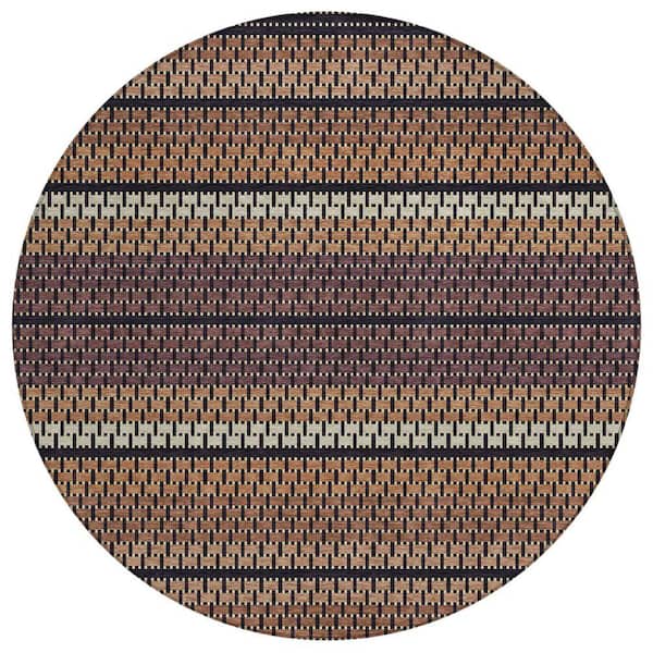 Chantille Machine Washable Indoor/Outdoor Abstract ACN2427 Paprika 8 ft. x 8 ft. Round Rug
