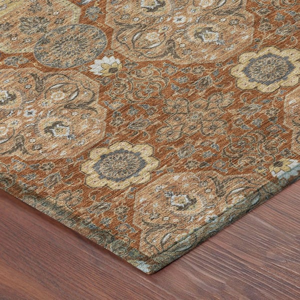 Chantille Machine Washable Indoor/Outdoor Abstract ACN2483 Paprika 8 ft. x 8 ft. Area Rug