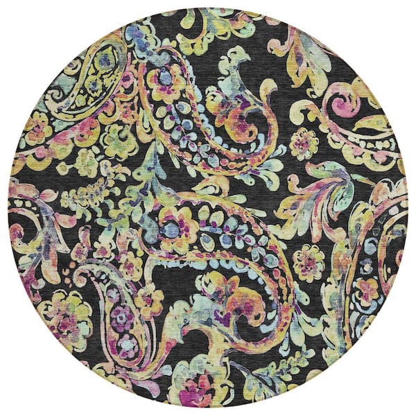 Chantille Machine Washable Indoor/Outdoor Abstract ACN834 Black 8 ft. x 8 ft. Area Rug