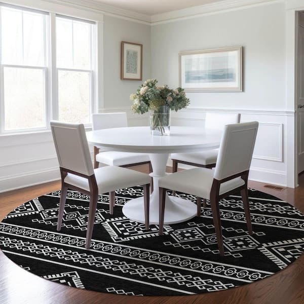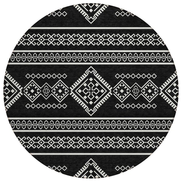 Chantille Machine Washable Indoor/Outdoor Abstract ACN901 Black 8 ft. x 8 ft. Area Rug