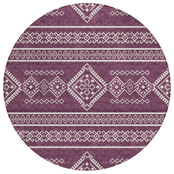 Chantille Machine Washable Indoor/Outdoor Abstract ACN901 Eggplant 8 ft. x 8 ft. Area Rug