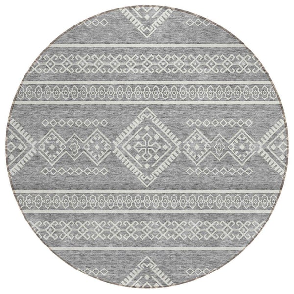 Chantille Machine Washable Indoor/Outdoor Abstract ACN901 Gray 8 ft. x 8 ft. Area Rug