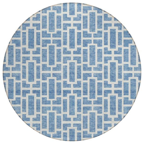 Chantille Machine Washable Indoor/Outdoor Abstract ACN916 Denim 8 ft. x 8 ft. Area Rug