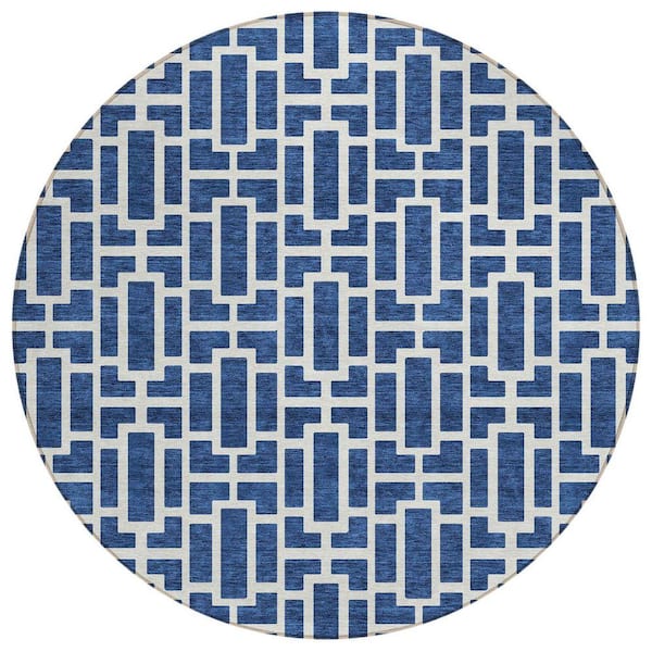 Chantille Machine Washable Indoor/Outdoor Abstract ACN916 Navy 8 ft. x 8 ft. Area Rug