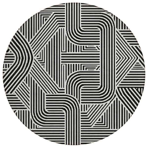 Chantille Machine Washable Indoor/Outdoor Abstract ACN917 Black 8 ft. x 8 ft. Area Rug