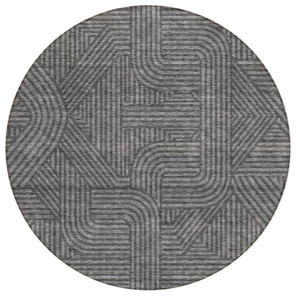 Chantille Machine Washable Indoor/Outdoor Abstract ACN917 Charcoal 8 ft. x 8 ft. Area Rug