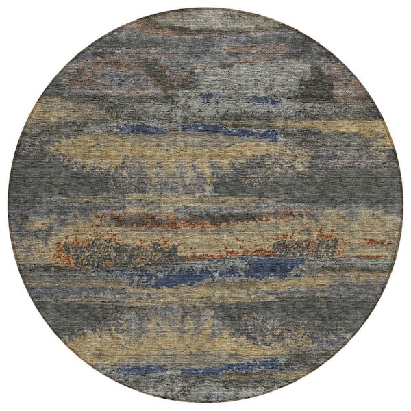 Chantille Machine Washable Indoor/Outdoor Abstract ACN942 Graphite 8 ft. x 8 ft. Area Rug