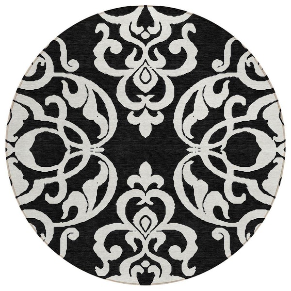 Chantille Machine Washable Indoor/Outdoor Abstract ACN973 Black 8 ft. x 8 ft. Area Rug