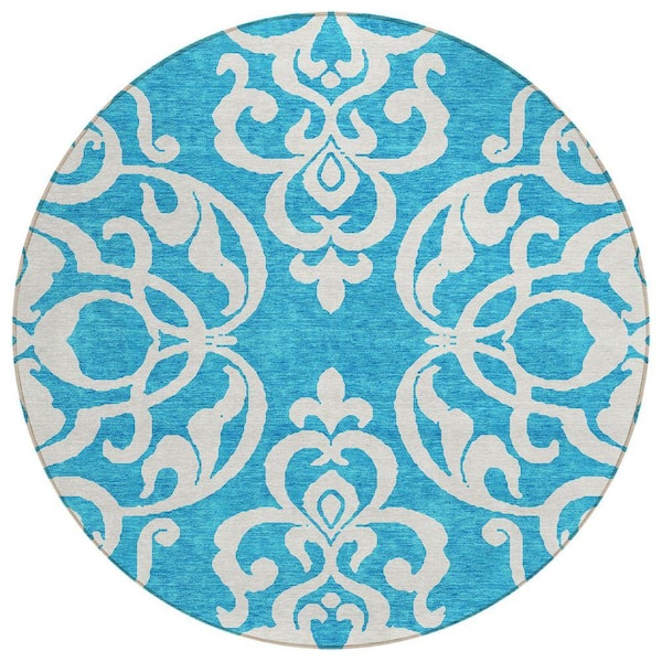 Chantille Machine Washable Indoor/Outdoor Abstract ACN973 Turquoise 8 ft. x 8 ft. Area Rug