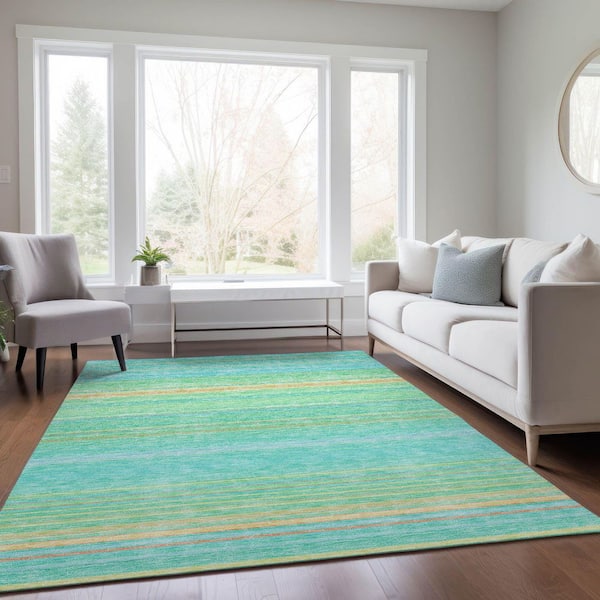 Chantille Machine Washable Indoor/Outdoor Abstract ACN979 Aqua 10 ft. x 14 ft. Area Rug