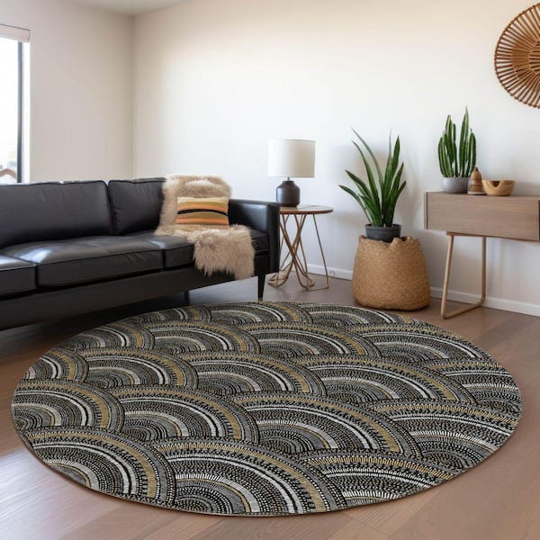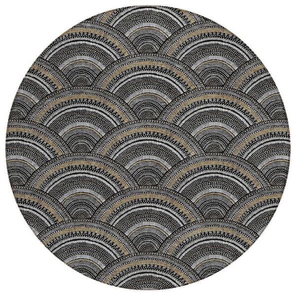 Chantille Machine Washable Indoor/Outdoor Abstract ACN984 Black 8 ft. x 8 ft. Area Rug
