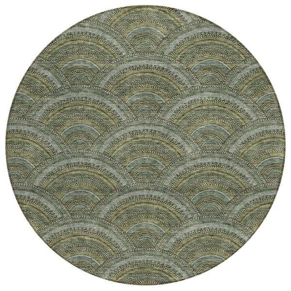 Chantille Machine Washable Indoor/Outdoor Abstract ACN984 Olive 8 ft. x 8 ft. Area Rug