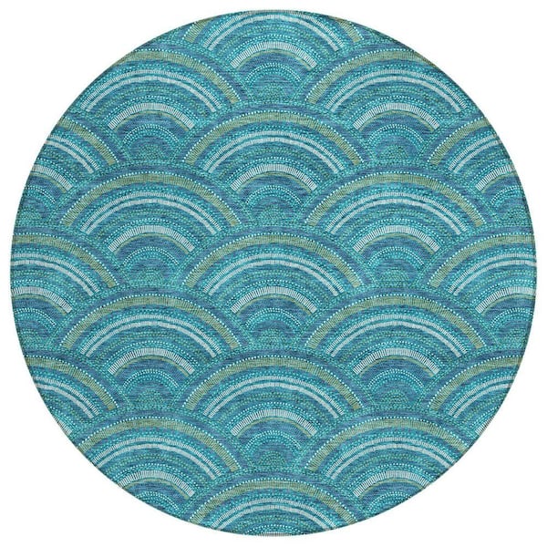Chantille Machine Washable Indoor/Outdoor Abstract ACN984 Teal 8 ft. x 8 ft. Area Rug