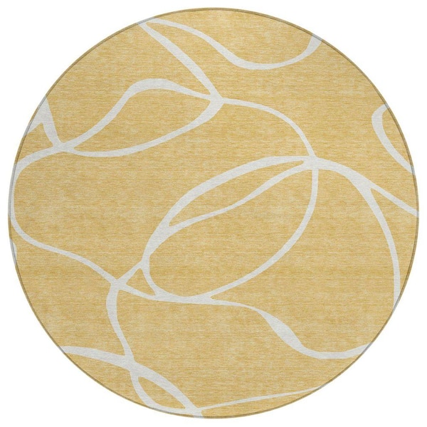 Chantille Machine Washable Indoor/Outdoor Abstract ACN999 Gold 8 ft. x 8 ft. Area Rug