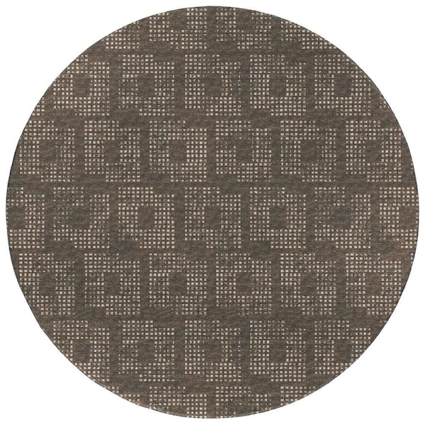 Eleanor Brown 8 ft. x 8 ft. Geometric Indoor/Outdoor Washable Area Rug