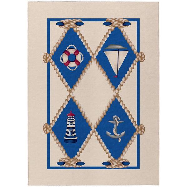 Harpswell Ivory 3 ft. x 5 ft. Geometric Indoor/Outdoor Area Rug