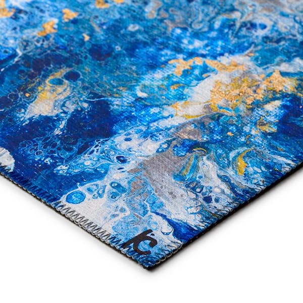 Karina Blue 2 ft. 3 in. x 7 ft. 6 in. Geometric Indoor/Outdoor Area Rug